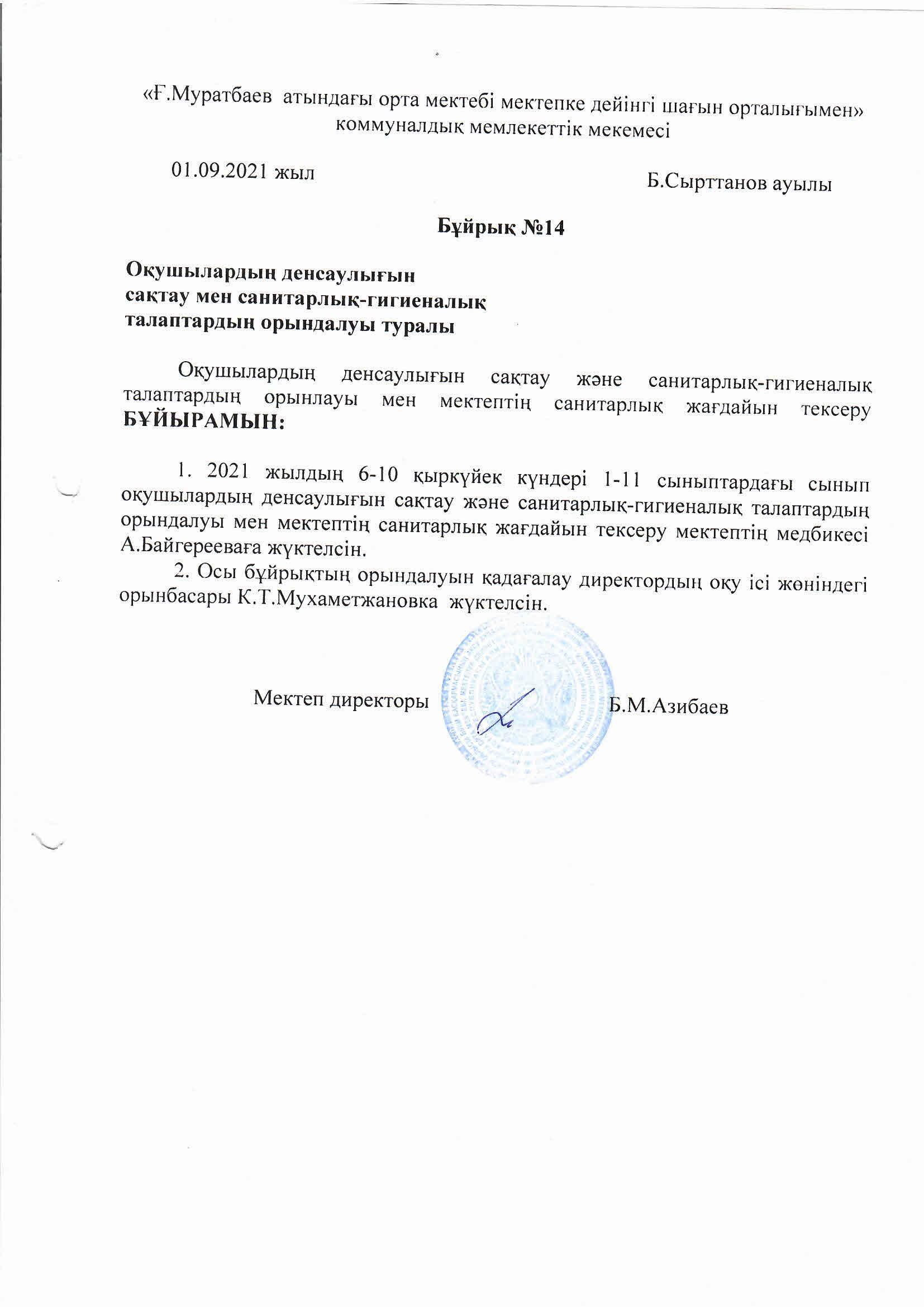 Оқушылар денсаулығын сақтау мен санитарлық талаптар » Ғани Мұратбаев атындағы орта мектебі, мектепке дейінгі шағын орталығымен коммуналдық мемлекеттік мекемесі