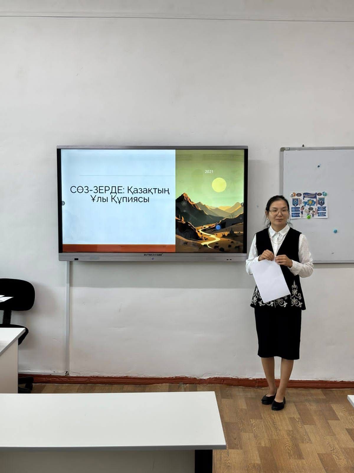 Махамбет Аяулым Махамбетқызы 5-6-сыныптар арасында "Сөз-зергер" тақырыбында интеллектуалды ойын өткізді
