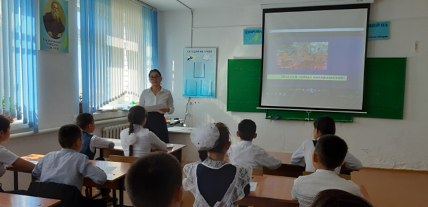 Мектеп директоры М.Нұрмухамбетовна алғы сөз сөйлеп, оқушыларға экологияны қорғау керектігі жайлы ақпараттар айтып өтті.